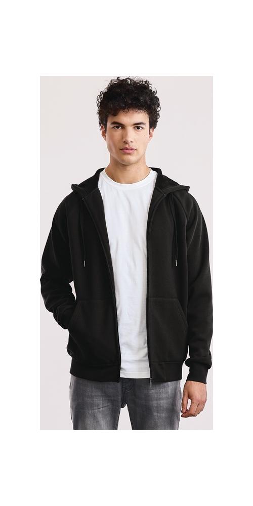Außenmaterial 85 % Baumwolle, 15 % Polyester, Innenmaterial 95 % Polyester, 5 % Elastan, ca. 500 g/m² · schwere Sweatjacke mit Velvet Futter, was ähnlich wie Nicki ist, jedoch dichter und feiner · Raglan · Kordelzug · durchgehender und verdeckter Reißverschluss · Kängurutasche · Elastanbündchen an Ärmeln und Saum · Mischgewebe, Molton bonded Velvetauf Anfrage auch ab Gr. XS und bis Gr. 5XL lieferbar