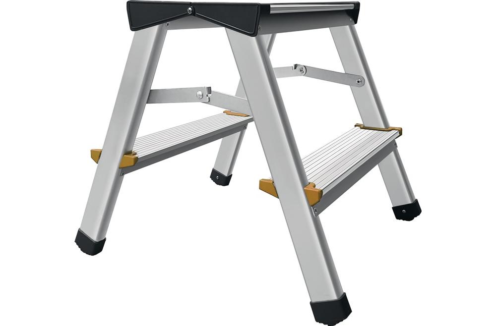 Aluminium · leicht und handlich · platzsparend, zusammenklappbar · Stufen mit Anti-Rutsch-Riffelung · max. Gesamtbelastung 150 kgWeitere technische Eigenschaften: