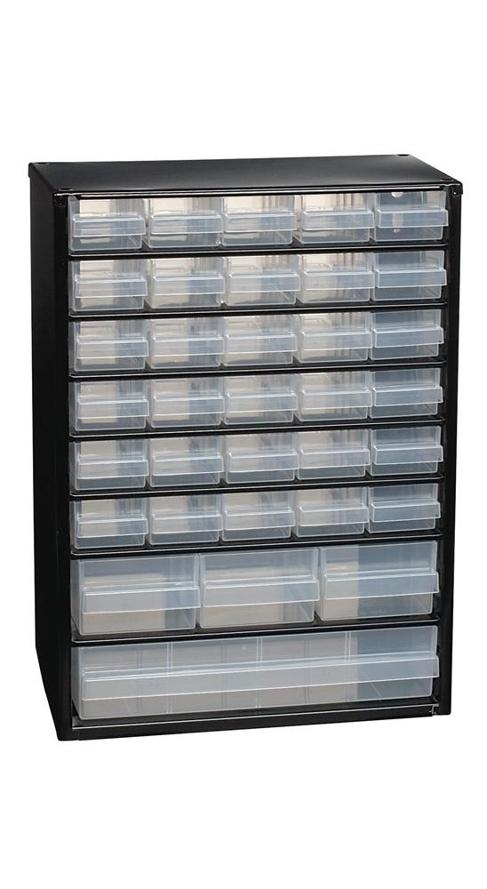 raaco Kleinteilemagazin B306xT150xH420mm Stahlblech 34 Schubladen Poypropylen schwarz/transparent