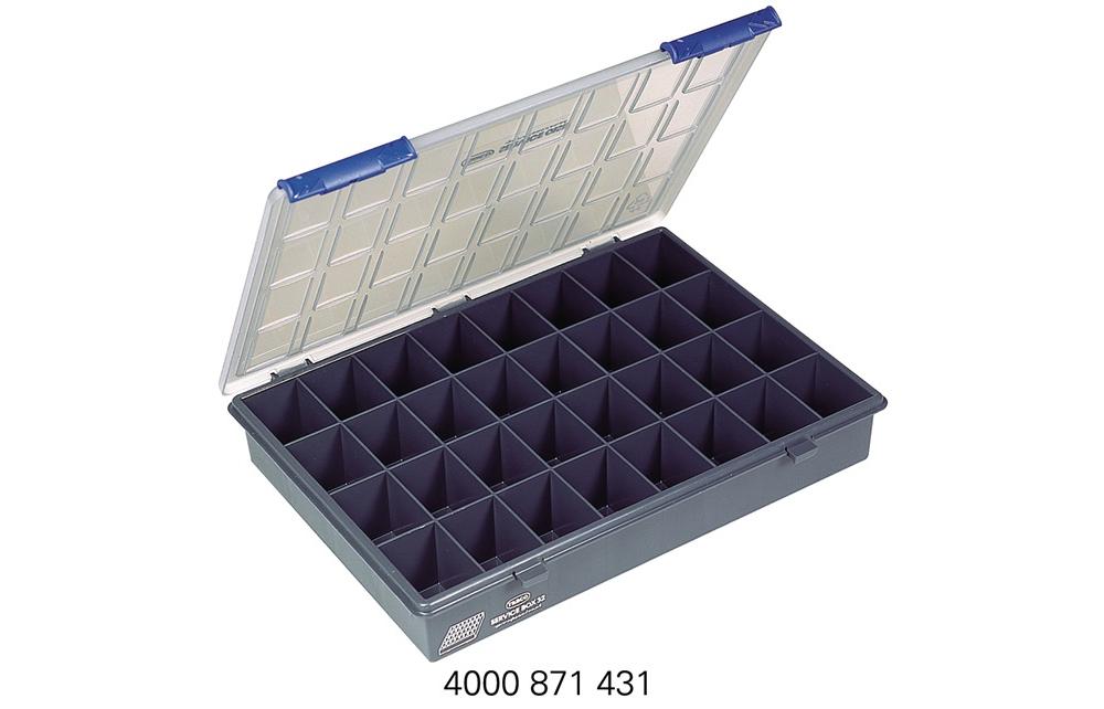 raaco Sortimentskasten B338xT261xH57mm 32 Fächer transparent dunkelblau