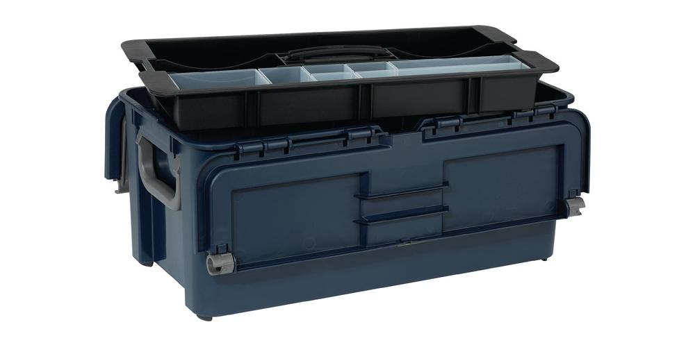 mit im Deckel voll versenkbaren Bügeltragegriffen · Werkzeugträger und Schubladen auf Wunsch weiter unterteilbar · mit separat erhältlichen Einteilungssets – gehören nicht zum Lieferumfang · bitte separat bestellen · aus schlagfestem Polypropylen