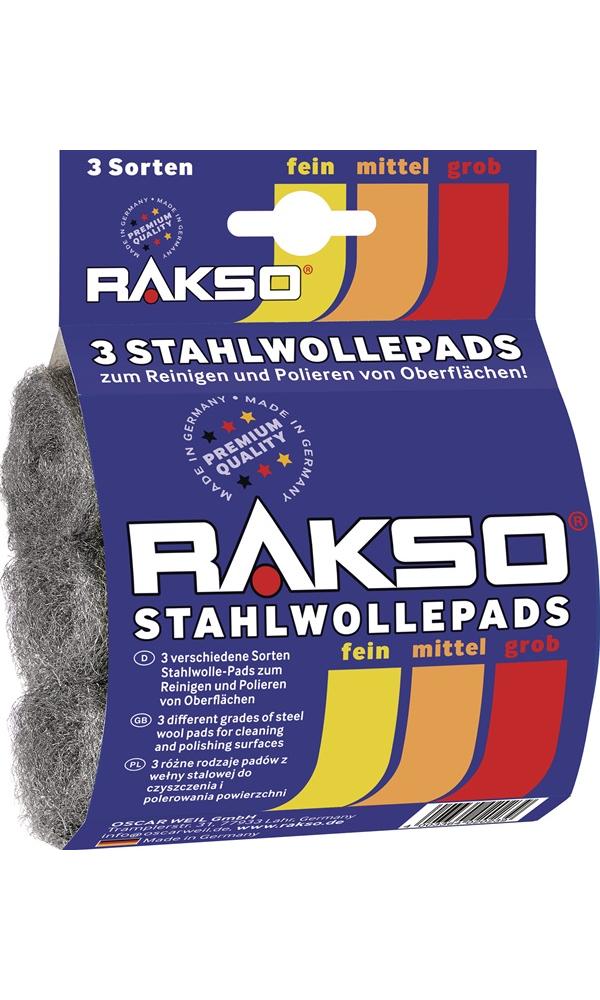 RAKSO Stahlwollepad fein / mittel / grob 00/1/3 3 x 16 g