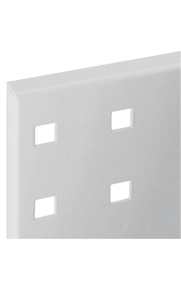 flexibel und ausbaufähig · ideal zur Befestigung an Wänden oder Werkbänken · Lochplatten aus 1,25 mm starkem Stahlblech · pulverbeschichtet · rundum abgekantet und mittels Unterzüge verstärkt · Lochabstand 38 mm · Lochgröße 10 mm²Weitere technische Eigenschaften: