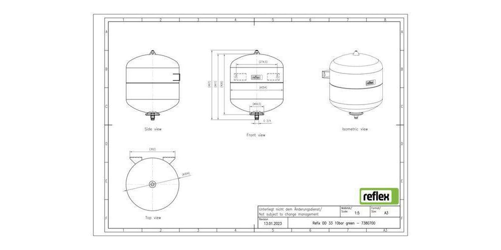 Reflex Membran-Druckausdehnungsgefäß Refix DD grün, 10 bar 33 l