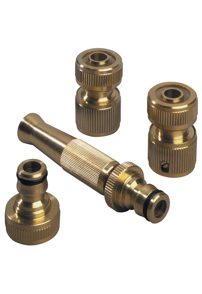 Hahnanschluss · Schnellschlauchstück · Wasserstop und Spritze · MessingLieferung auf Blisterkarte für SB-Wand