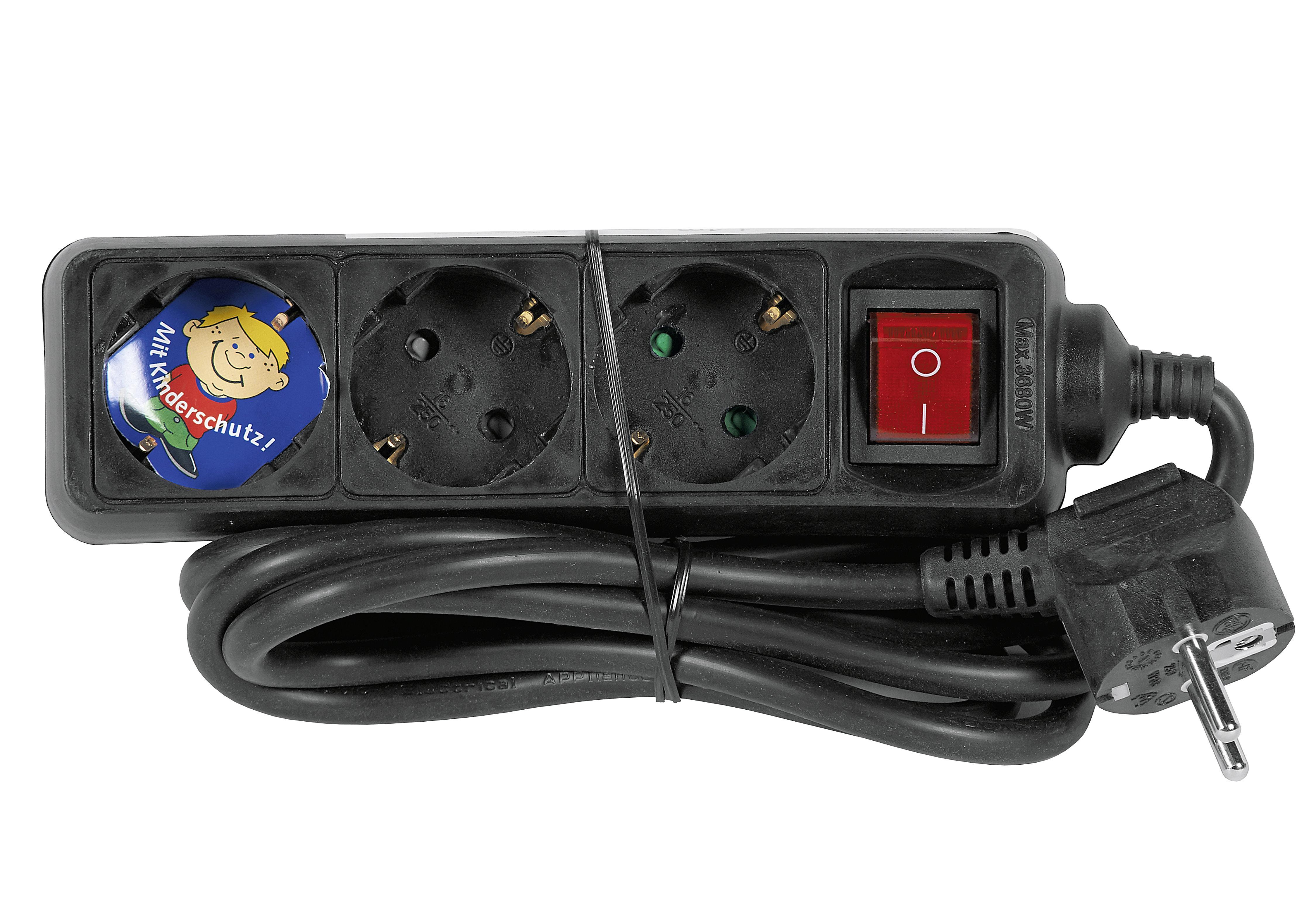 3 quersitzende Steckdosentöpfe, komfortabler Einsatz von Winkelsteckern möglich, mit beleuchtetem Kontrollschalter, bruchfestes Gehäuse aus Spezialkunststoff, ergonomisch gestalteter Schutzkontaktstecker, 2-polig mit Schutzkontakt, Zuleitung 1,4 m H05VV-F 3G1,5, Winkelstecker, technische Daten: 16 A, 250 V~, 3500 Watt, Abmessungen (B x H x T): 200 x 53 x 40 mm, VDE- und GS-PrüfzeichenAttribute