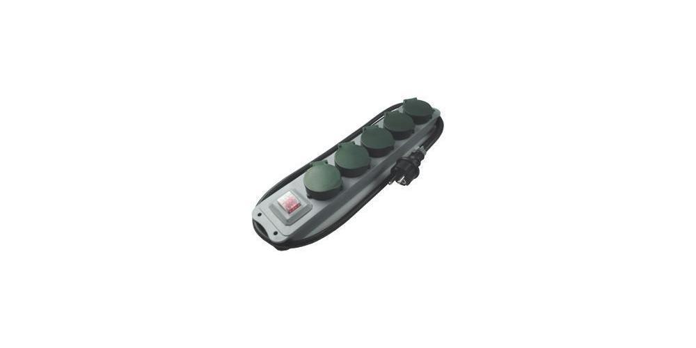 Profi-Verteiler mit beleuchtetem Kontrollschalter, für den Einsatz im Freien, 5 quersitzende Steckdosenköpfe, spritzwassergeschützt IP 44, 1,5 m Gummi-Zuleitung H07RN-F 3G1,5, Stecker zentrale Einführung,Attribute