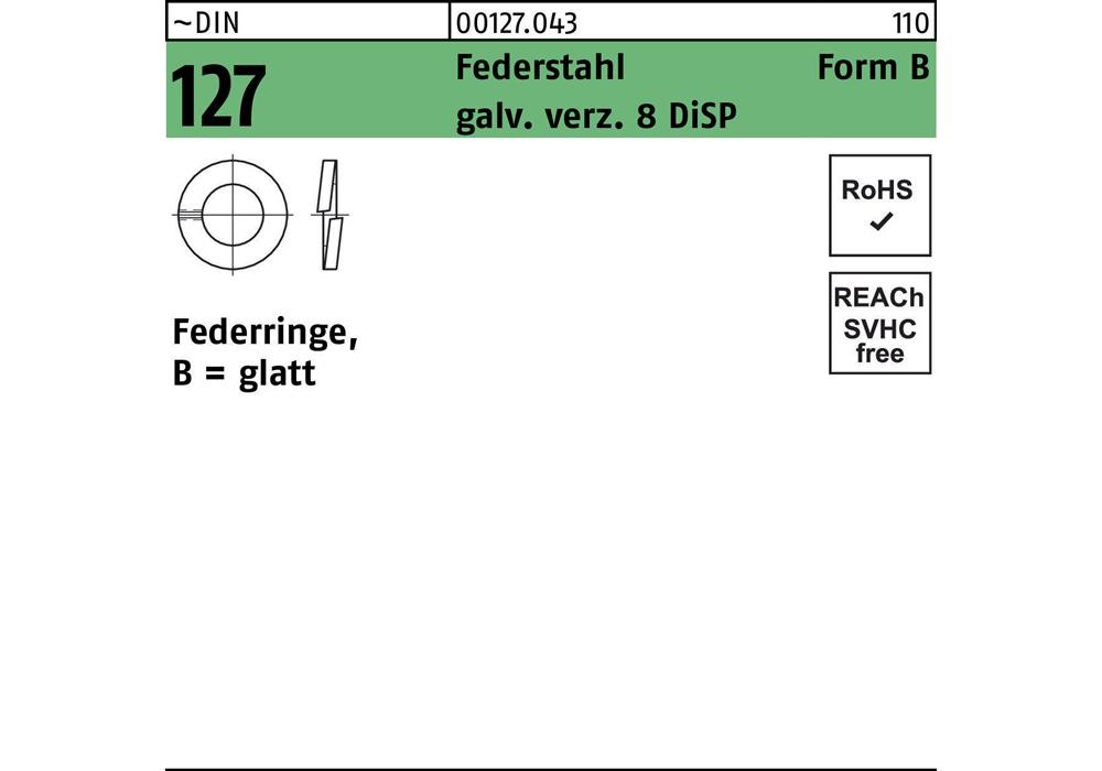 ~DIN 127 Federstahl Form B galv. verz. 8 DiSP Federringe · glatt - Abmessung: B 12 VE=S (500 Stück )Weitere technische Eigenschaften: