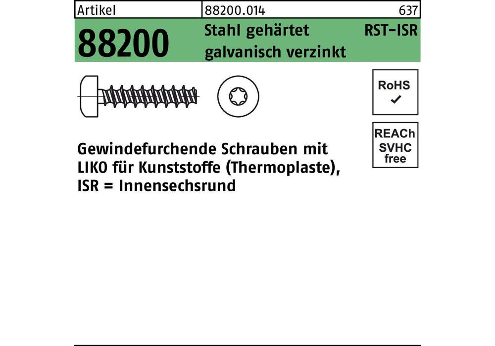 Artikel 88200 Stahl geh. RST-ISR galvanisch verzinkt Gewindefurchende Schrauben f. Kunststoff LIKO · ISR - Abmessung: 2,5 x 12 -T8 VE=S (1000 Stück)