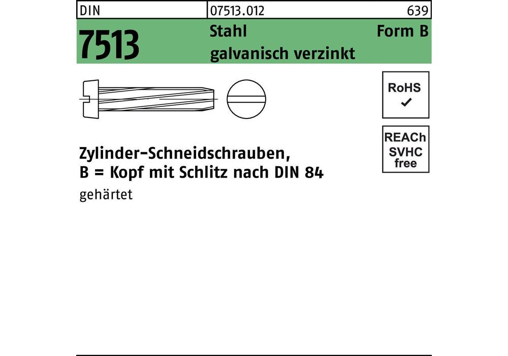 Reyher Gewindeschneidschraube DIN 7513 Form B Zylinder m.Schlitz BM 3 x 8 Stahl galvanisch verzinkt