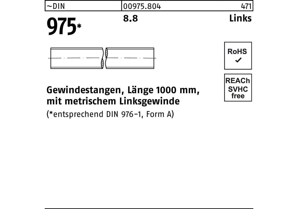Typ | Gewindestangen, Länge 1000 mm, mit metrischem Linksgewinde Zentimeter |