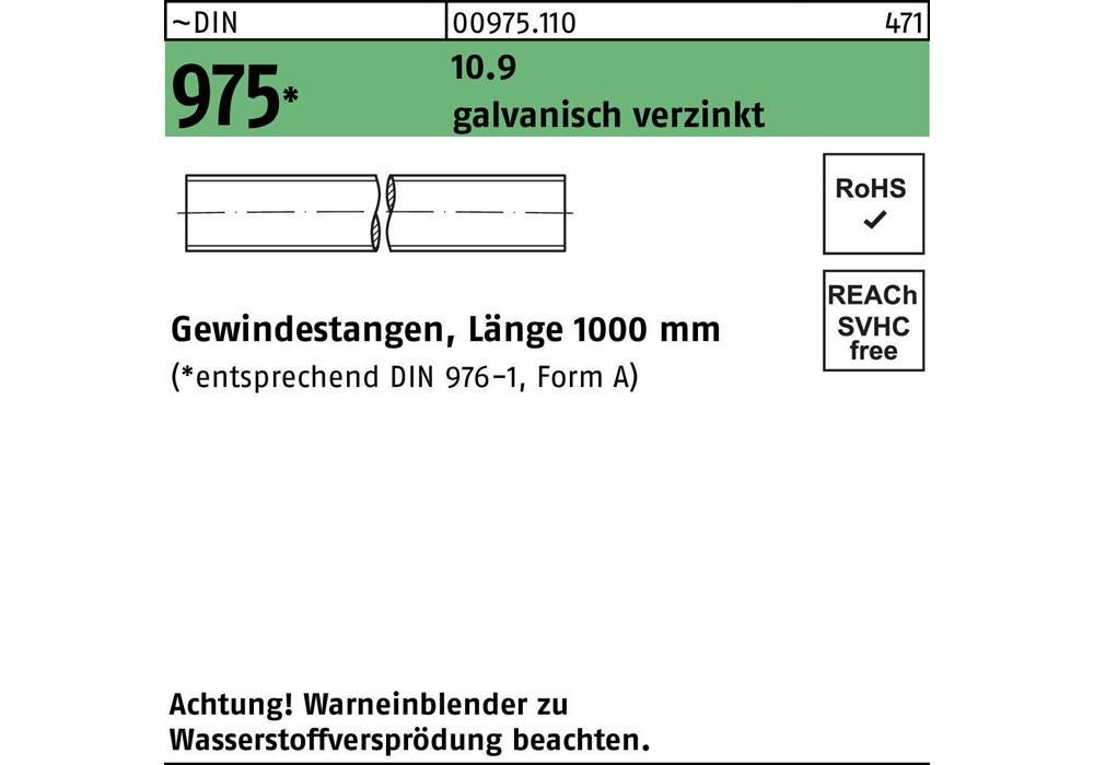 ~DIN 975 10.9 galvanisch verzinkt Gewindestangen · Länge 1000 mm - Abmessung: M 16 VE=S (1 Stück)Weitere technische Eigenschaften:
