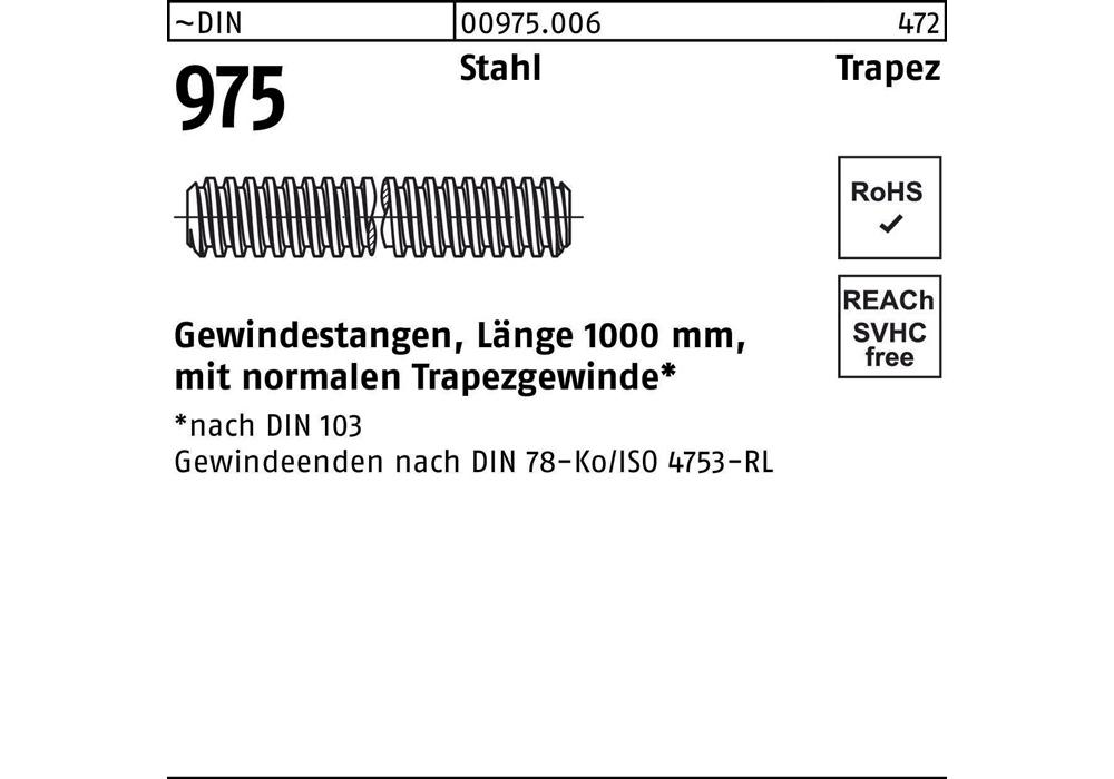 ~DIN 975 Stahl Trapez Gewindestangen · Länge 1000 mm mit normalen Trapezgewinde* - Abmessung: TR 16 x 4 VE=S (1 Stück )Weitere technische Eigenschaften: