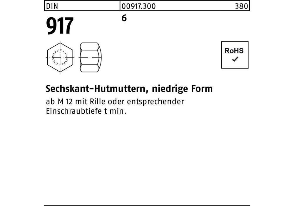 DIN 917 6 Sechskant-Hutmuttern · niedrige Form - Abmessung: M 5 VE=S (1000 Stück )Weitere technische Eigenschaften: