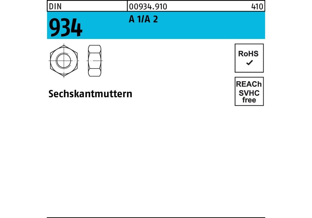 DIN 934 A 1/A 2 Sechskantmuttern - Abmessung: M 2,5 VE=S (500 Stck )Weitere technische Eigenschaften: