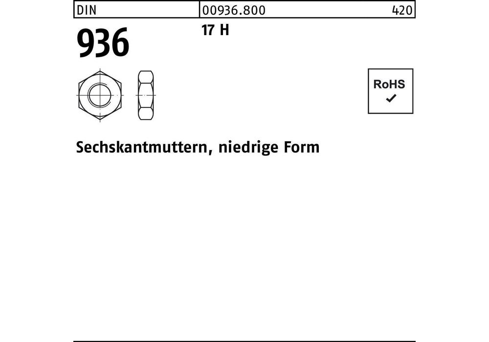 DIN 936 17 H Sechskantmuttern · niedrige Form - Abmessung: M 36 VE=S (10 Stück)Weitere technische Eigenschaften: