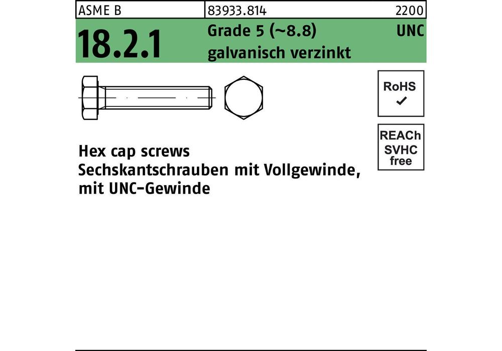 ASME B 18.2.1 Grade 5 (~8.8) UNC galvanisch verzinkt Hex cap screws · Sechskantschrauben mit Vollgew. · mit UNC Gewinde - Abmessung: 1/4 x 3/4 VE=S (100 Stück)Weitere technische Eigenschaften: