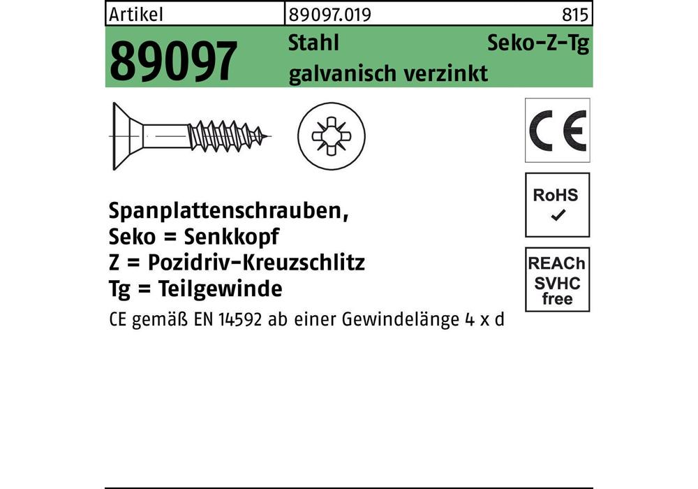 Artikel 89097 Stahl CE Seko-Z-Tg galvanisch verzinkt Spanplattenschrauben · Senkkopf · Pozidriv-Kreuzschlitz · Teilgewinde - Abmessung: 4,5 x 80/48 -Z VE=S (200 Stück )Weitere technische Eigenschaften: