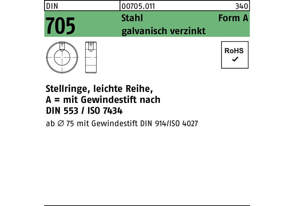 DIN 705 Stahl Form A galvanisch verzinkt Stellringe · leichte Reihe · mit Gewindestift DIN 553/ISO 7434 - Abmessung: A 50 x 80 x 18 VE=S (5 Stück)Weitere technische Eigenschaften: