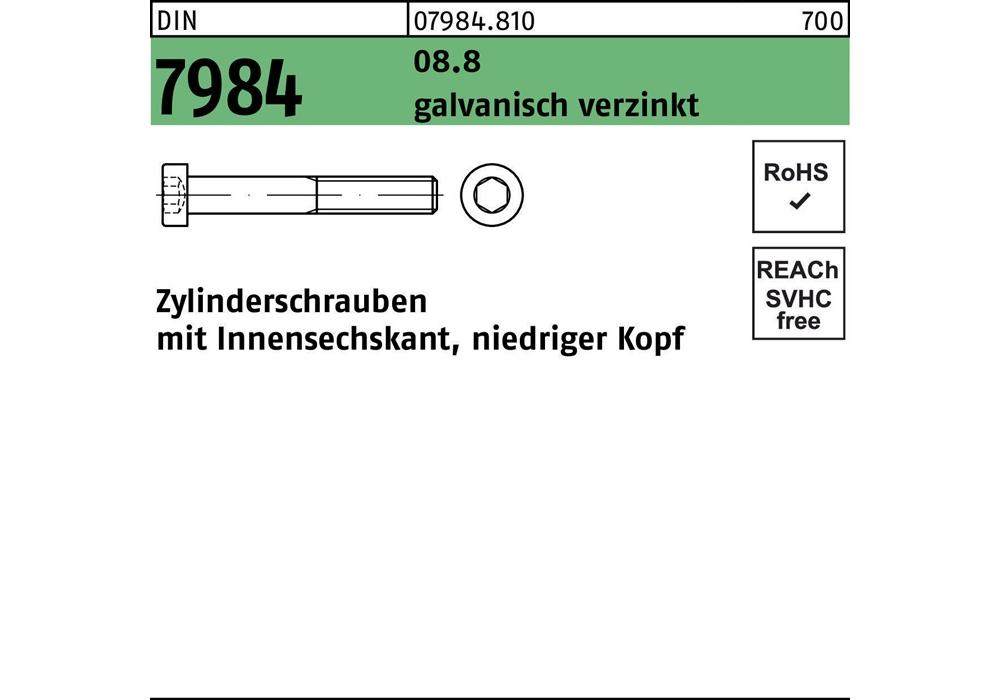DIN 7984 08.8 galvanisch verzinkt Zylinderschrauben mit Innensechskant · niedriger Kopf - Abmessung: M 8 x 55 VE=S (200 Stück )