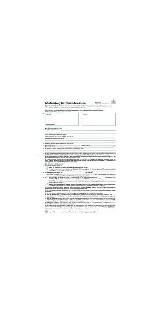 Mit diesem Mietvertrag können Gewerberäume für viele Zwecke vermietet werden · auch zur Vermietung von Teileigentum geeignet. Besonderheiten: Angabe des genauen Geschäftszwecks-Angabe von Flächen und maximaler Deckenlast · Vermietung zusätzlicher Flächen und Freiflächen möglich · befristete Vermietung mit Verlängerung oder Option möglich · Erklärungen des Mieters zur Umsatzsteuerpflicht und Werbeflächenangabe · Konkurrenz- und Sortimentsschutz möglich.Attribute