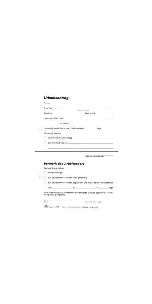 | Werbliche Produkttypbezeichnung | Urlaubsantrag Stück |