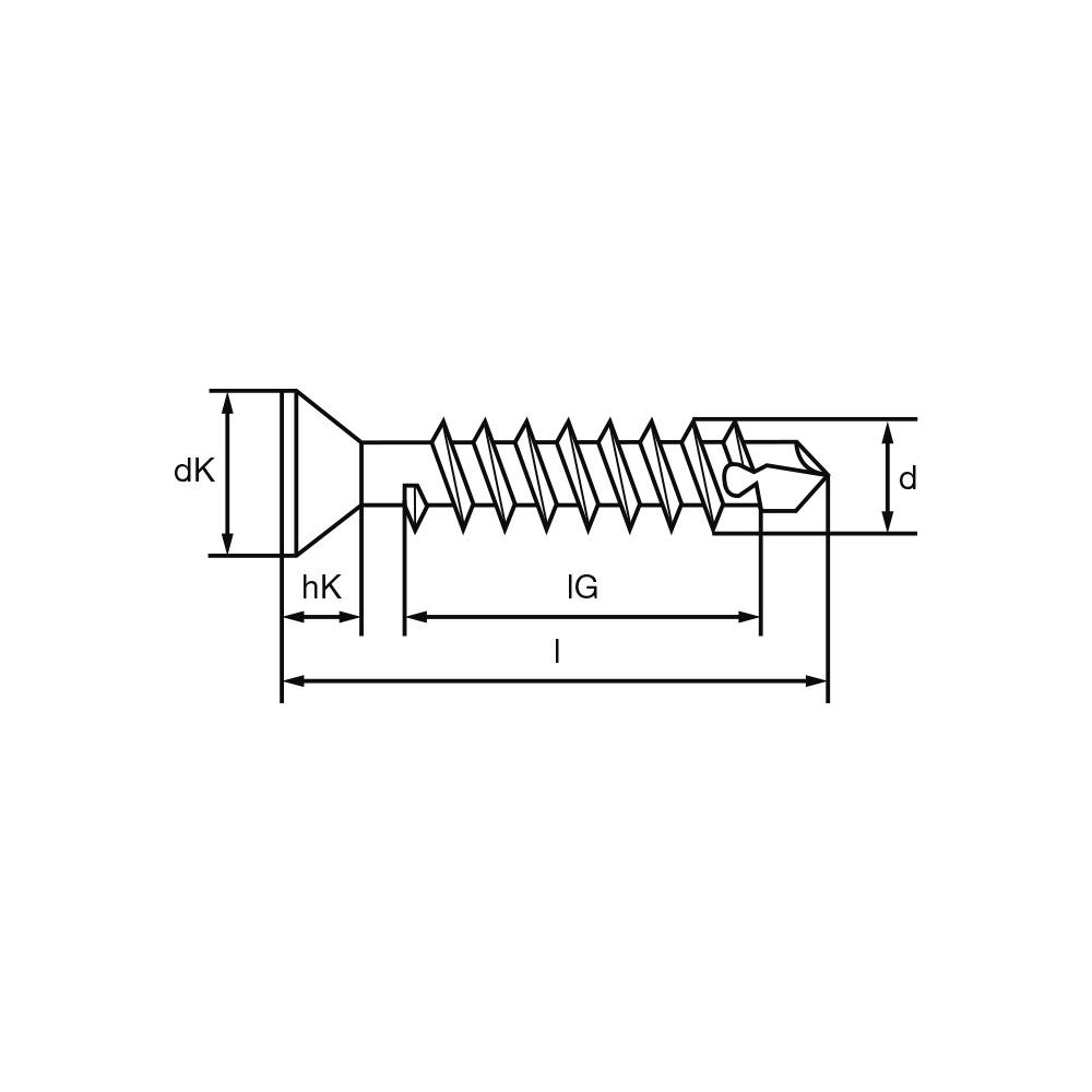 RODCRAFT Bohrschrauben Senkkopf DIN 7504 P (O) TX, A2 Gewindedurchmesser 5,5 mm Länge 60 mm Gewindelänge 39 mm