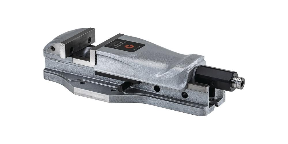 kraftverstärktes Spannsystem · für den Einsatz auf NC-Fräsmaschinen und Bearbeitungszentren · alle Verschleißteile sind gehärtet und geschliffen · auf Drehplatte einsetzbar mit Gradeinteilung · Grundfläche mit Längsnuten (20H7) für genaue Fixierung auf Maschinentischen · Vorteile:- hohe Genauigkeit durch präzise Backenführung