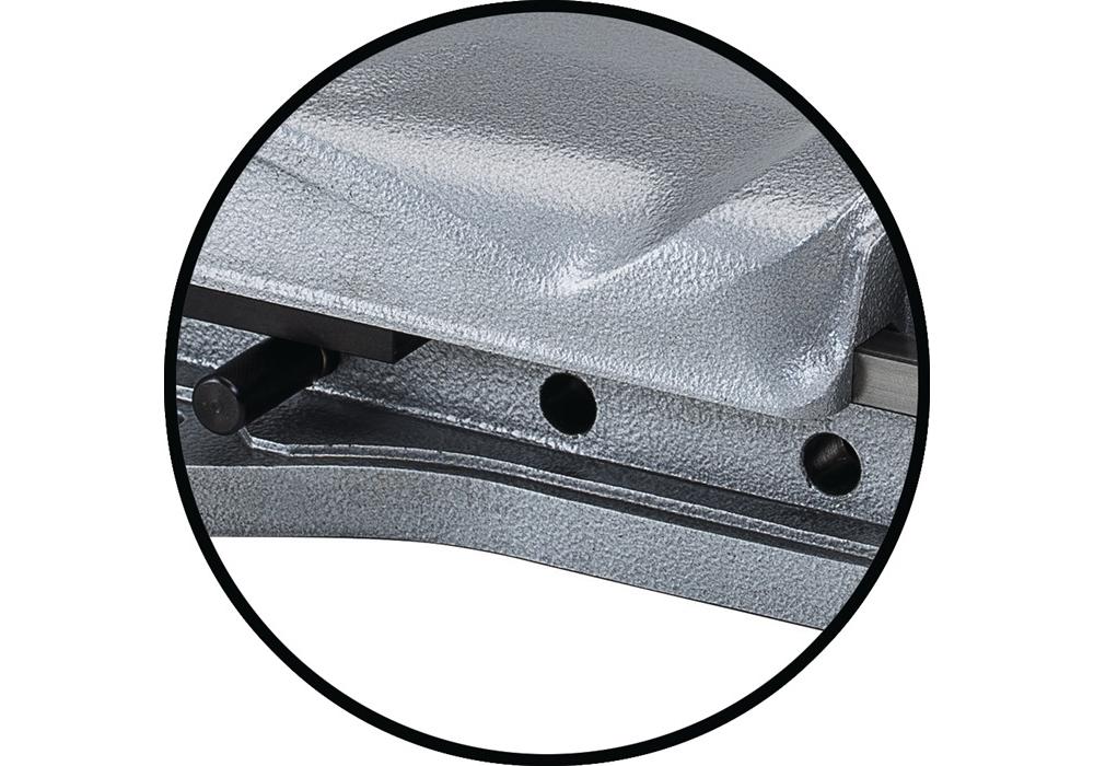 - lange Flachbahnführung der beweglichen Backe mit großem Spannbereich