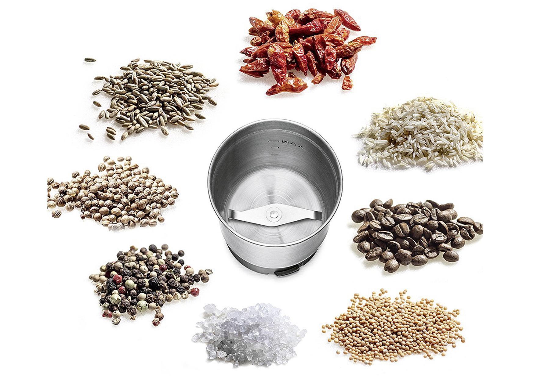 pflegeleichtes Edelstahl Gehäuse, leistungsstarker Motor, leise im Betrieb, einfache Bedienung: Zeitsteuerung in 5 Sekunden Schritten von 5 – 30 Sekunden, 3-stufige Drehzahlsteuerung, Pulse-Funktion für manuellen Betrieb, sichere Handhabung: Betrieb nur bei aufgesetztem Gehäusedeckel möglich, Sicherheitsabschaltung beim Öffnen des Gehäusedeckels, 4 Silikonfüße für rutschfesten Stand, transparenter, abnehmbarer Gehäusedeckel, abnehmbare Teile spülmaschinengeeignet, Inklusive: 2 hochwertige Edelstahl Behälter, jeweils mit transparentem Deckel: Mahlbehälter mit 2-flügeligem Schlagmesser, Universalbehälter mit 4-flügeligem Spezialmesser,Kaffeelot mit integrierter Reinigungsbürste1,3120
