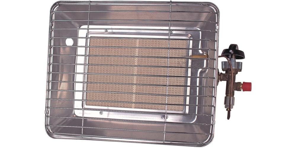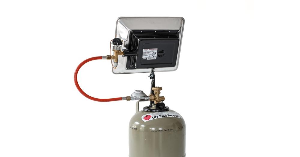 Gas-Aufsatz-Heizstrahler für 5 kg und 11 kg Propangasflaschen · Zündsicherung · robustes Metallgehäuse mit Schutzgitter · stufenlos regelbar · mit ThermosicherungWeitere technische Eigenschaften: