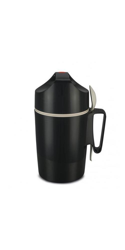(Polypropylen) Kunststoff-Einsatz schützt das Thermo-Starkglas, dichter Schraubdeckel, integrierter Löffel, stoß- und bruchsicher