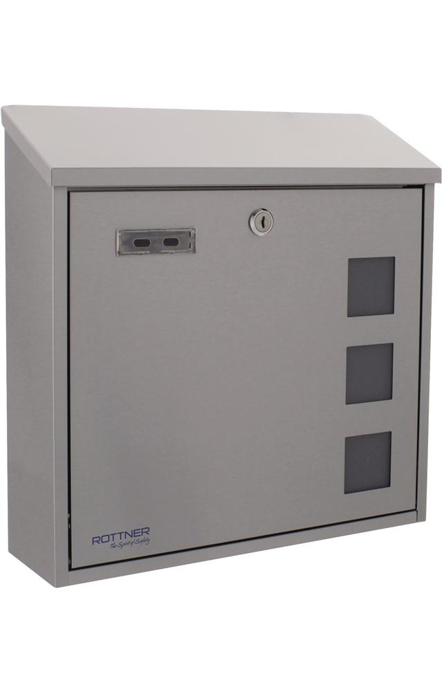 ROTTNER Briefkasten Muro Höhe 360 mm Breite 360 mm Tiefe 100 mm grau Edelstahl DIN C4