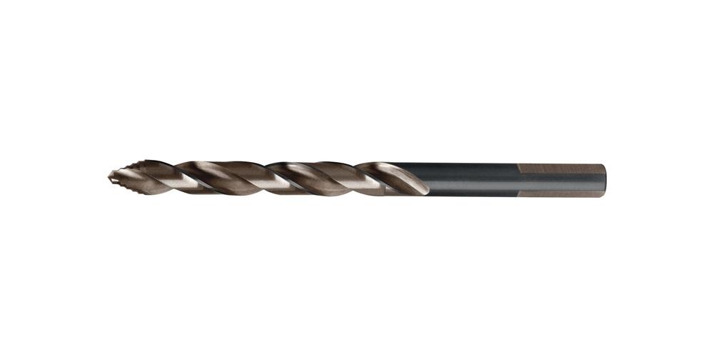 HSS-Co5 · DIN 338 · FLOWSTEP®-Spitze · Spitzenwinkel 118 ° · rechtsschneidend · 3-Flächenschaft · punktgenaues Zentrieren ohne Ankörnen auch auf runden Oberflächen wie z. B. Rohren · extrem schnelles und kräfteschonendes Anbohren · Bohren von großen Durchmessern ohne Vorbohren · leichter und ruhiger Bohrvorgang, ohne verkanten im Material · 3-Flächenschaft verhindert das Durchdrehen im Bohrfutter · optimal geeignet für den Einsatz in handgeführten Elektro-Werkzeugen · für NE-Metalle, Bau- und Kohlenstoffstähle, hochlegierte Stähle (z.B. V2A/V4A), Werkzeugstähle, Magnesiumlegierungen, Kunststoffe sowie Aluminium, Plexiglas und Holz · mit Zylinderschaft: bis Nenn-Ø 3,3 mm