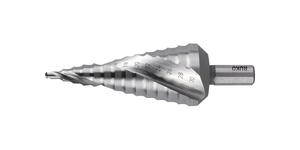 RUKO Stufenbohrer Bohrbereich 4 - 30 mm HSS-Co5 spiralgenutet Schneidenanzahl 2 Stufenanzahl 14