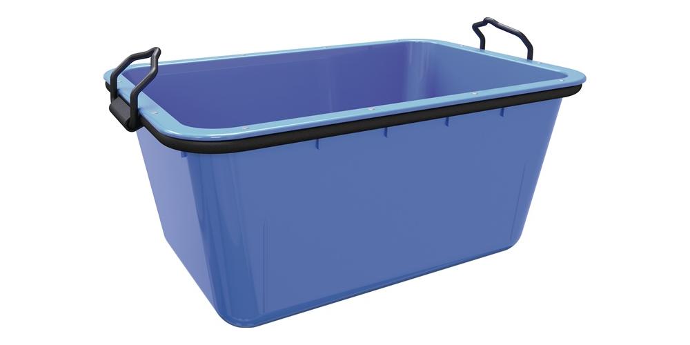 Mörtelwanne aus Kunststoff in blau, mit Stahlrohr aus robustem und schlagzähem HDPE (High Density Polyethylen) mit hoherDichte UV-stabilisiert, für den Transport von Mörtel und anderen Materialien