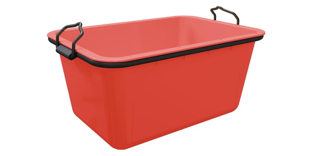 Mörtelwanne aus Kunststoff in rot, mit Stahl aus robustem und schlagzähem HDPE (High Density Polyethylen) mit hoherDichte UV-stabilisiert, für den Transport von Mörtel und anderen Materialien