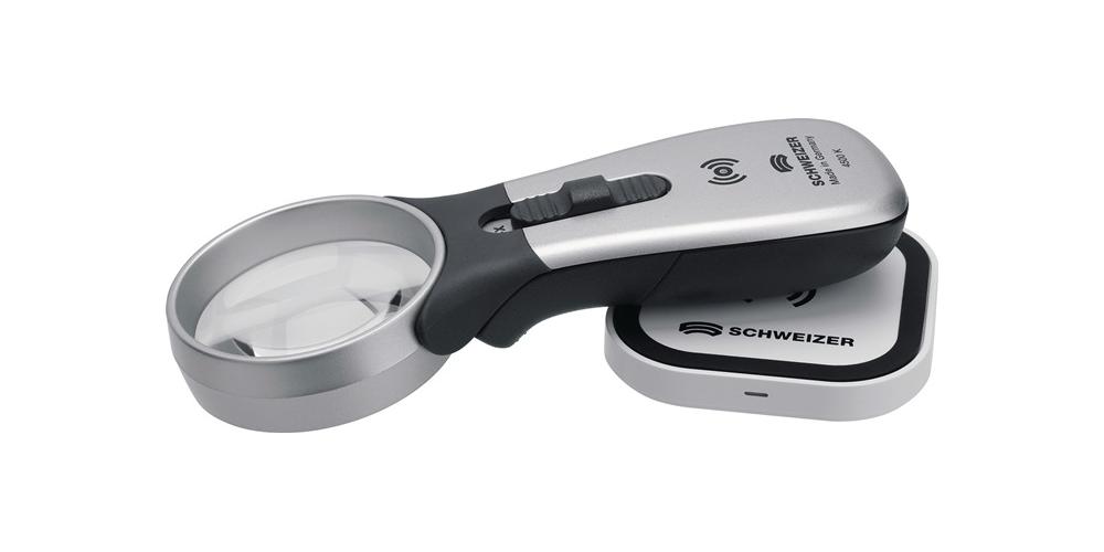 SCHWEIZER Handleuchtlupe Tech-Line Induktion Vergrößerung 4x LED Linsen-Ø 55 mm