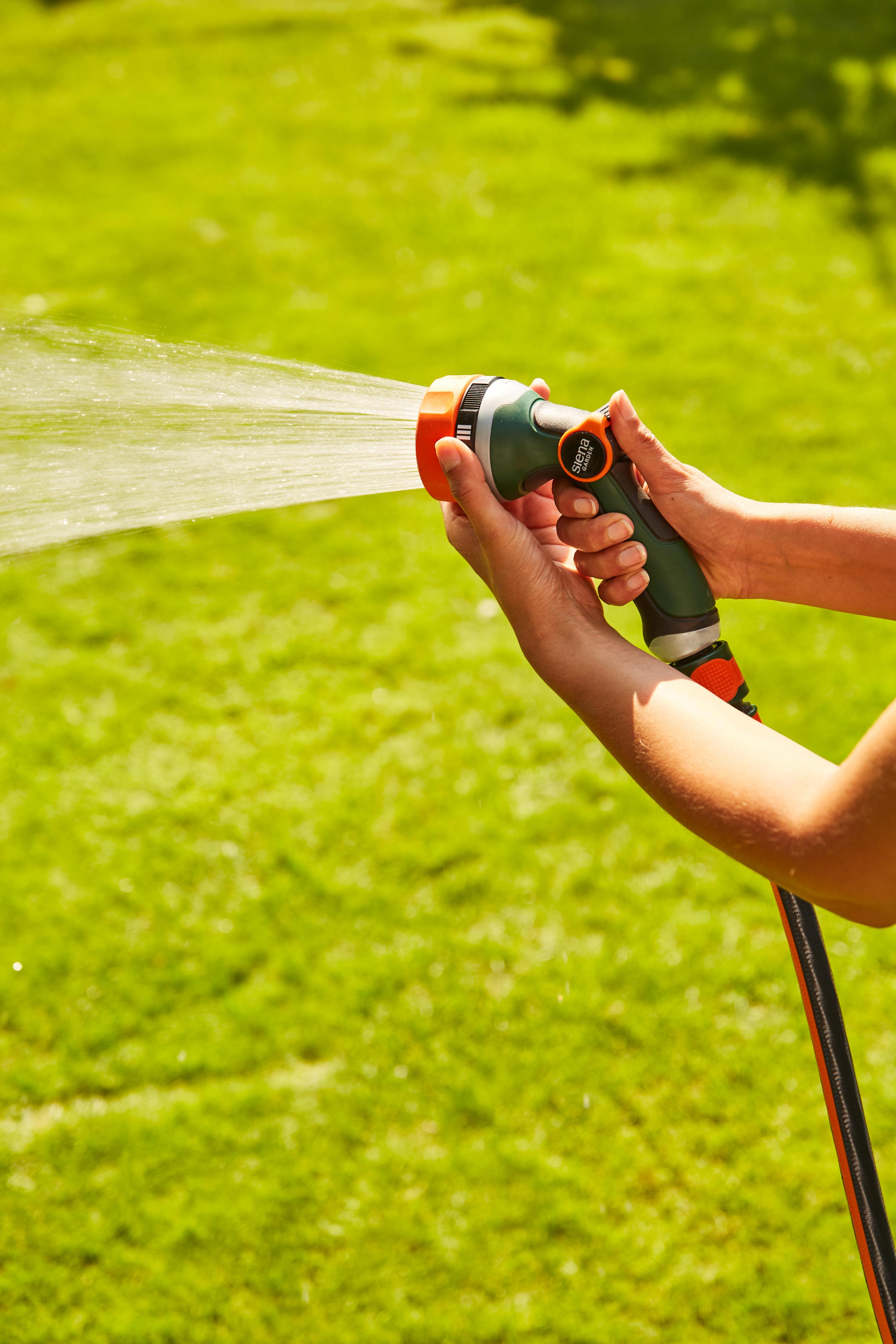 Die SIENA GARDEN Premium Multibrause verfügt für jeden Einsatzzweck über das passende Sprühbild. Bewässerungs- und Reinigungsarbeiten werden mühelos erledigt. Die Wasserdurchflussmenge lässt sich mit der komfortablen Daumenregulierung stufenlos verstellen. Der ergonomische Griff und die gummierten Oberflächen sorgen für einen angenehmen Griff. Der robuste Metallkorpus und Brausekopf genügen höchsten Ansprüchen und machen die Premium Multibrause zu einem widerstandsfähigen Helfer. Dein Garten wird aufblühen und in neuem Glanz erstrahlen.