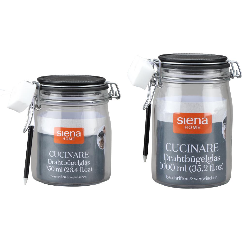 SIENA HOME Drahtbügel-Glas "Cucinare" 750 ml mit Stift & Schwamm