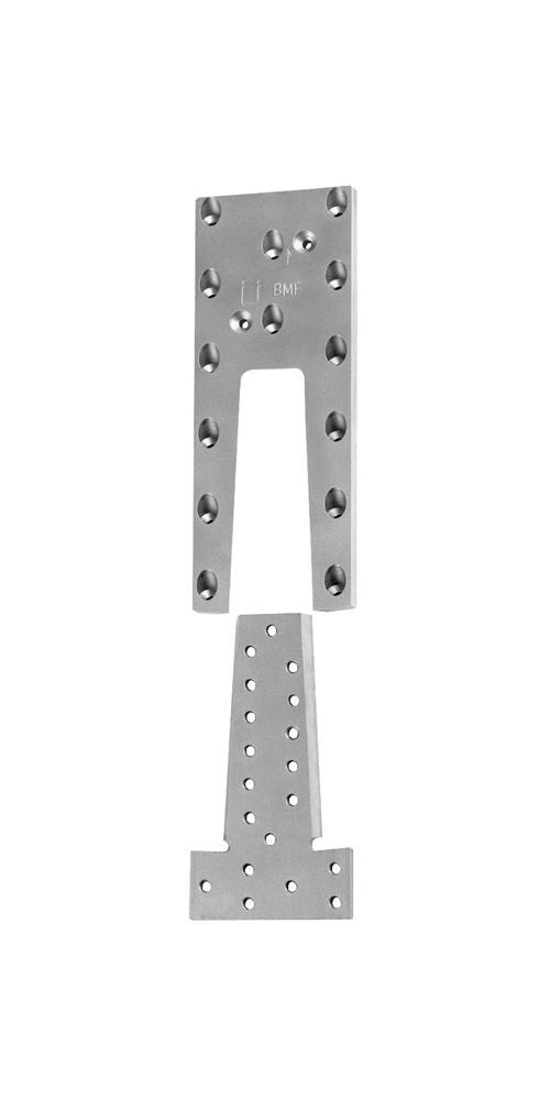 für verdeckte Balkenanschlüsse · zum Einbau mit Schattenfuge oder völlig verdeckt mit Kontaktanpassung des Nebenträgers an den Hauptträger · Einbau in Balken aus Brettschichtholz und Vollholz aus Nadelholz Sortierklasse S 10Weitere technische Eigenschaften: