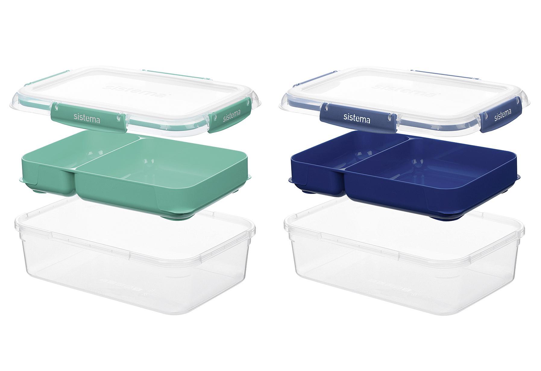 Sistema® TO GO™ Stax™ 2 L Auslaufsicherer Lunch und Snackbehälter mit sicherem Deckel und 2-Fach-Schale. Der 100% auslaufsichere und luftdichte Deckel bedeutet, dass Sie Ihr Essen mit zur Arbeit, in die Schule oder an einen anderen Ort nehmen können, ohne sich Sorgen machen zu müssen, dass es in Ihrer Tasche ausläuft. Hergestellt mit den für Sistema typischen, leicht verschließbaren Clips und Dichtungen, die Ihre Lebensmittel länger frisch halten und gleichzeitig zusätzliche Sicherheit bieten. Der Behälter im Stil einer Bento-Box mit herausnehmbarem Tablett mit zwei Fächern sorgt dafür, dass Ihre Lebensmittel getrennt bleiben - ein unverzichtbares Merkmal beim Packen von Lunchpaketen für Kinder und wählerische Esser. Behälter, Schalen und Deckel sind stapelbar und lassen sich leicht ineinander stecken, so dass die Aufbewahrung und Organisation ein Kinderspiel ist. Hergestellt in Neuseeland aus langlebigen, lebensmittelechten Materialien, BPA-frei, gefrierschrank- und mikrowellengeeignet sowie spülmaschinenfest. Abgerundete Ecken an Schale und Behälter erleichtern Kindern das Herausschöpfen von Lebensmitteln und Erwachsenen die Reinigung. Die quadratische Größe von 2,2 l ist perfekt für Mittagessen und Snacks.Lieferumfang: