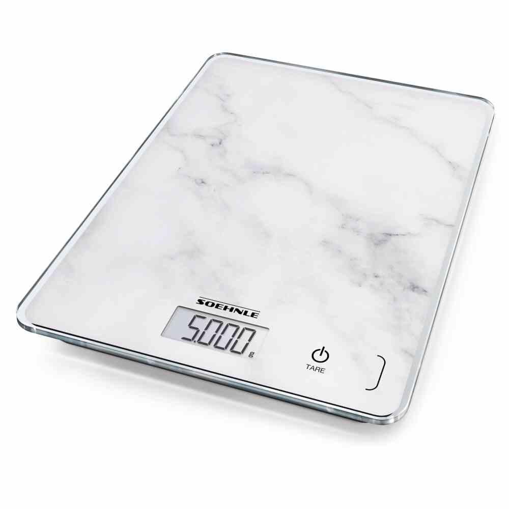 - mit ihrer hohen Tragkraft von 5 kg und ihrer 1 g genauen Teilung eignet sich die digitale Küchenwaage Page Compact 300 Marble von Soehnle ideal für den täglichen Gebrauch
