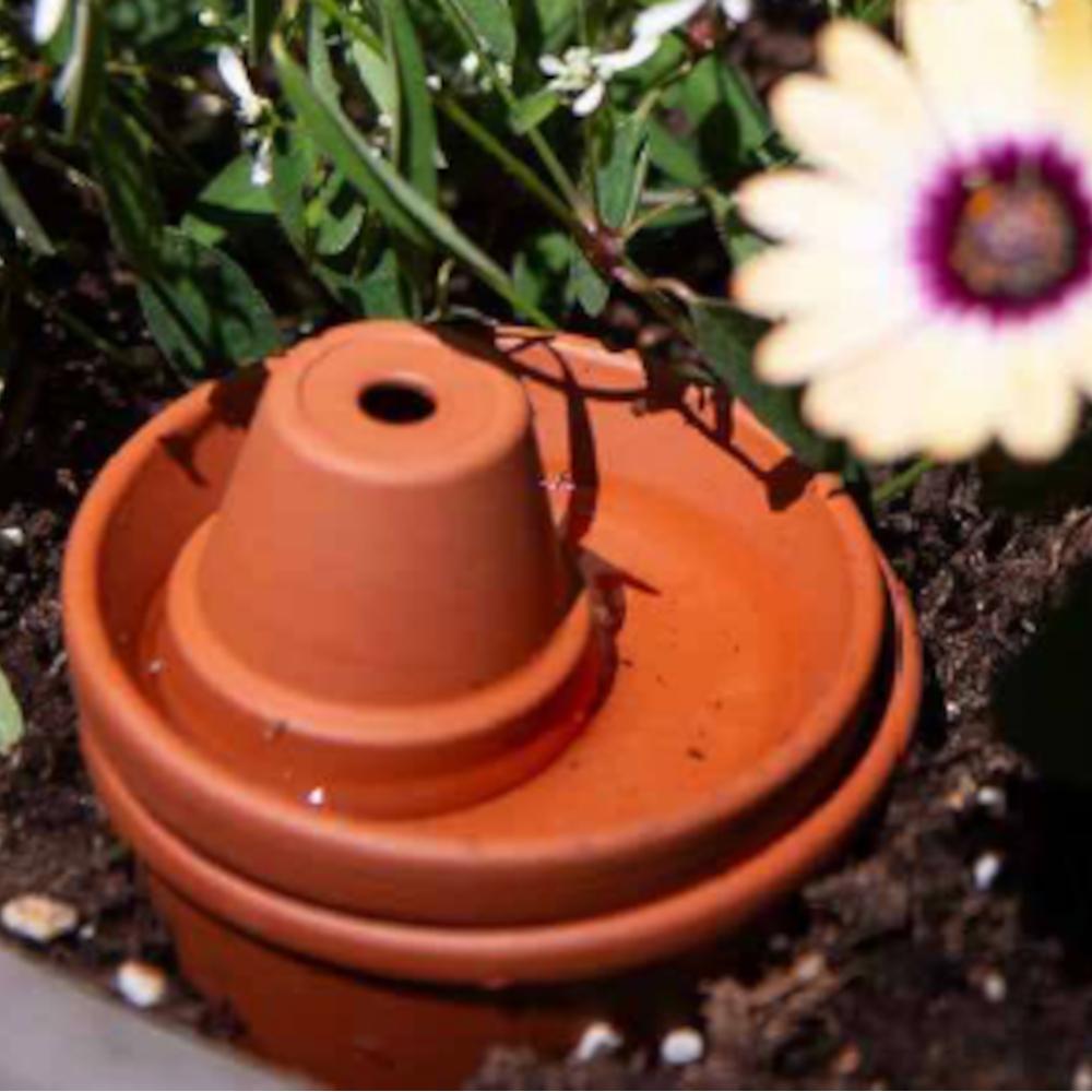 - unbehandelte Terrakottagefäße lassen Feuchtigkeit langsam diffundieren, wodurch ein kleiner Wasservorrat entsteht