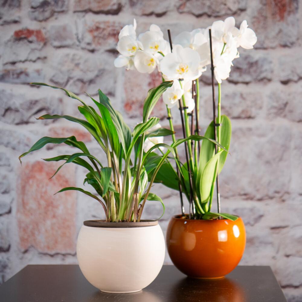 - durch den unbehandelten Tontopf kann das Wasser vom inneren Topf aufgenommen und langsam an die Pflanze abgegeben werden