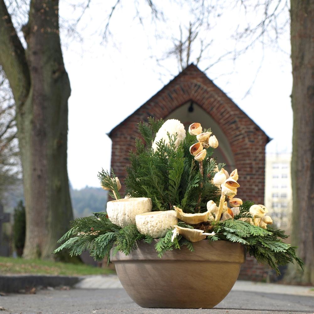- Pflanzschale aus basaltfarbenem Terrakotta mit dicker Wandung