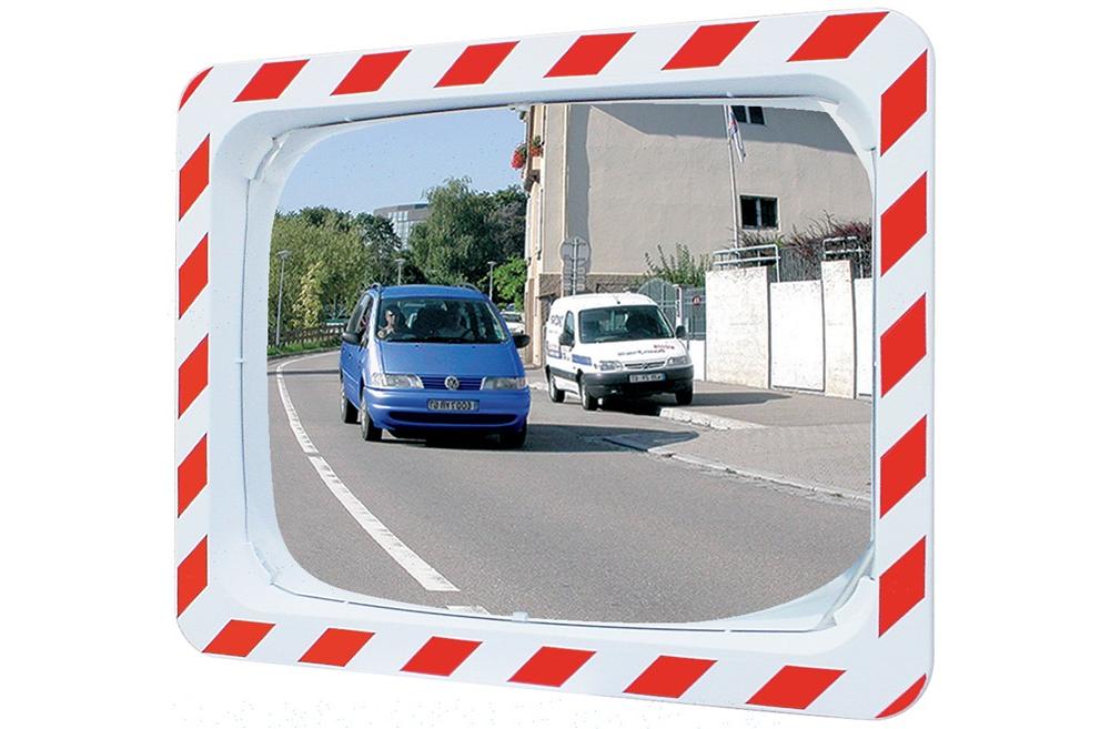SPL Verkehrsspiegel H600xB800mm Kunststoff, rot/weiß für 2 Richtungen 20 m