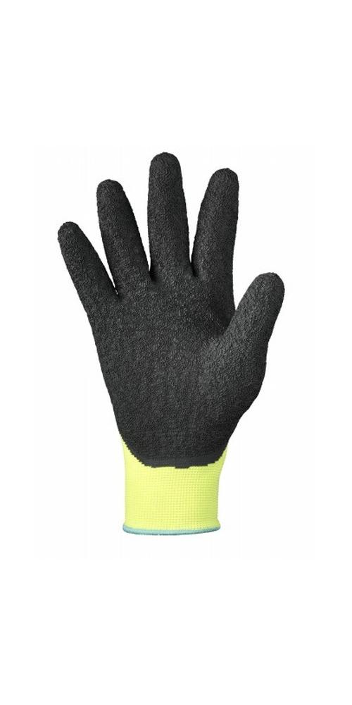 nach EN 388 · Kat. II · Träger: 100% Polyamid (Nylon), neongelb · Beschichtung: Schrumpf-Latex, schwarz · Feinstrick, nahtlos (13gg) · 3/4-Beschichtung · besonders guter Nässeschutz · sehr gute Passform, elastischer Träger · sicherer Griff auch bei feuchten Gegenständen · feinfühlig