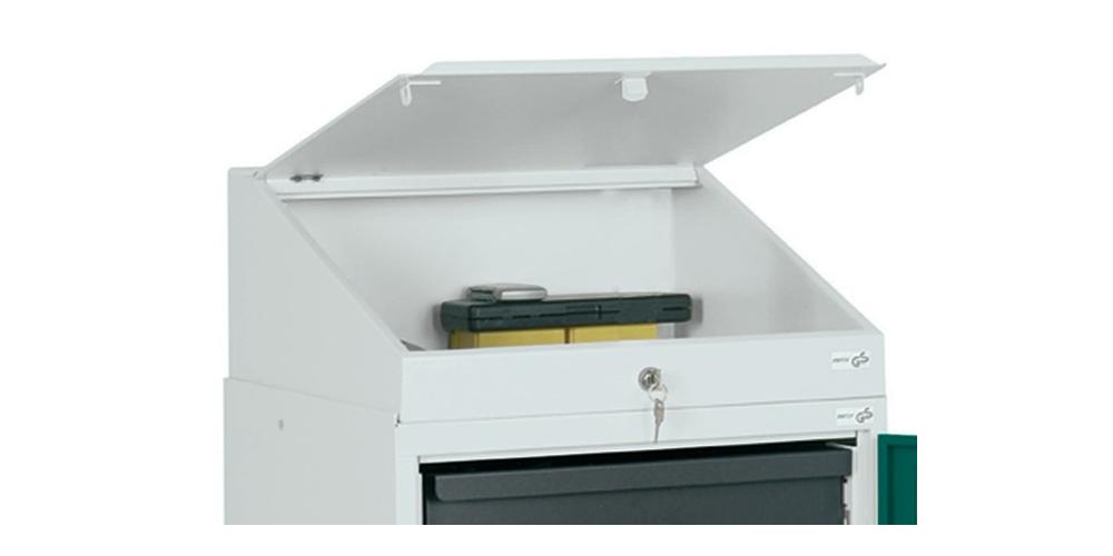 mit Bleistiftablage und großer Schreibfläche · geräumiger Innenraum unter dem abschließbarem Deckel mit Zylinderschloss · auch zur Wandmontage geeignetpassend zu Werkzeug- und Beistellschränken