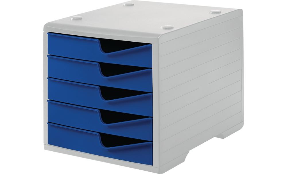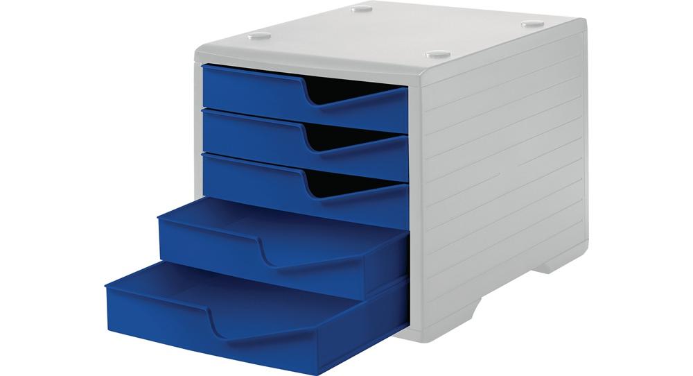 styro Ablagebox 5 Schubladen grau/blau Polyl H255xB270xT340 mm